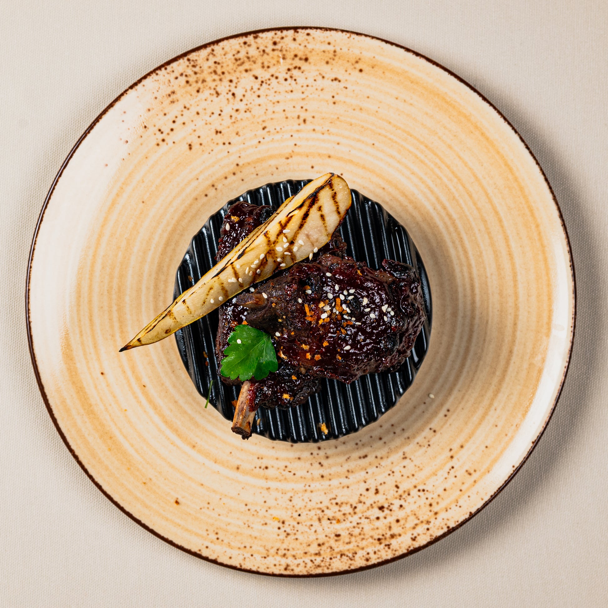 Slow-roasted or sous-vide wild boar ribs are a great choice for those who want to try an expressive and rich meat dish. The blackcurrant sauce provides a subtle sourness and emphasizes the flavor of the game. Try it and see for yourself!
